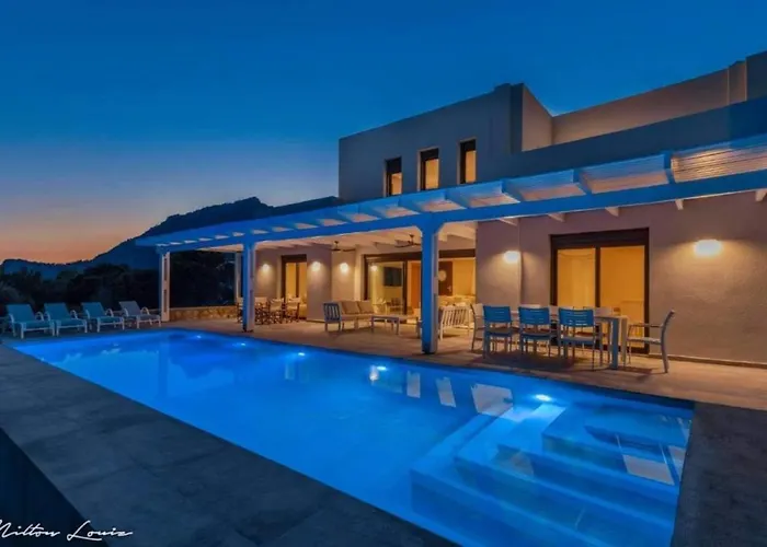 Solis Lindos Villa ligt binnen 2 km van Akropolis van Lindos en nodigt gasten uit om te ontspannen op een terras. De villa biedt een privézwembad en een bubbelbad en een sauna om bij te komen van een drukke dag.